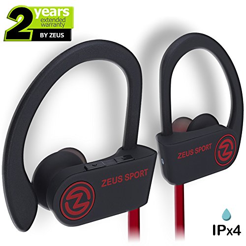 SPORT BLUETOOTH HEADPHONES: Sport headphones with over ear hooks, secure fit with silicone and foam ear tips. Workout Earbuds Zeus - Sports earphones for running, hiking, yoga, workout, gym, fitness, travelling. Bluetooth headphones Zeus Sport have ergonomically designed flexible ear hooks with gel flex silicone ear tips to ensure your headphones stay comfortably firm in place to guarantee fatigue free ears and tangle free comfort. Water resistance rating - IPx4 (Sweatproof).HD SOUND and NOISE CANCELLING MIC: Wireless Headphones have incredible HD stereo sound quality with bass, soaring highs and clear midrange. Noise cancelling earphones with CVC 6.0 technology reduce outside noise and offer strong signal. The Bluetooth earbuds with mic and volume control deliver astonishing acoustics with bass. Good sports earphones in a lightweight package. Have fun with Bluetooth headphones ZEUS SPORT!