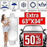 #3: ANTOER Car Sun Shade Travel Pouch, Large Sizes Windshield Sun Shade With 2 Ears Block Out 99% UV Rays Heat & Snow Car SunShade Keep Automobile Cool Easy to use 63”x34”