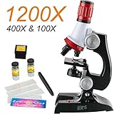 #6: AMSCOPE-KIDS Student Beginner Microscope With LED,100X/400X/1200X Magnification,Includes Accessory Set and Box-red