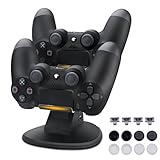 #7: Lasuavy DualShock 4 Dual Charging Station - PS4 / PS4 Pro / PS4 Slim Controller Charger Dock with 4 Micro USB Charging Dongles & 2 Extra USB Ports - 8 Thumb Grips for Joysticks Included - Black